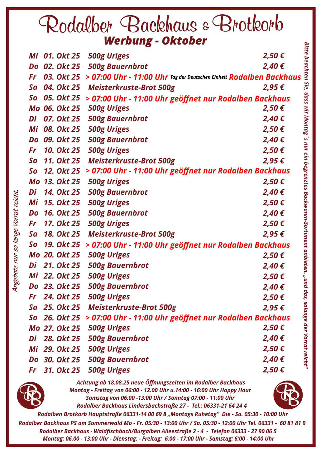 Beachten Sie bitte unseren neuen Brotbackplan, gültig ab dem 01.04.25.