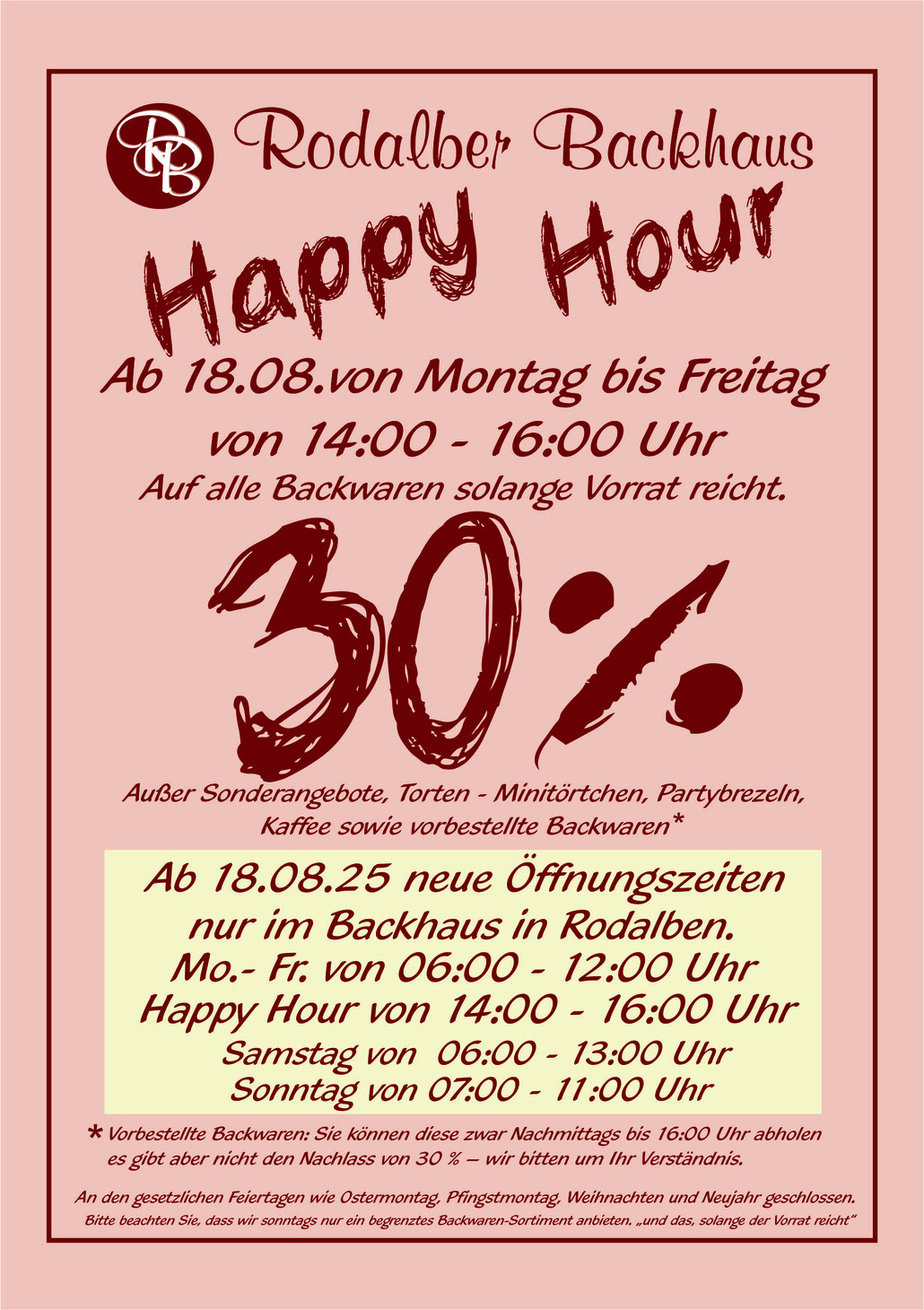 Montag - Freitag von 06:00 - 12:00 - Happy Hour 14:00 - 16:00 Uhr